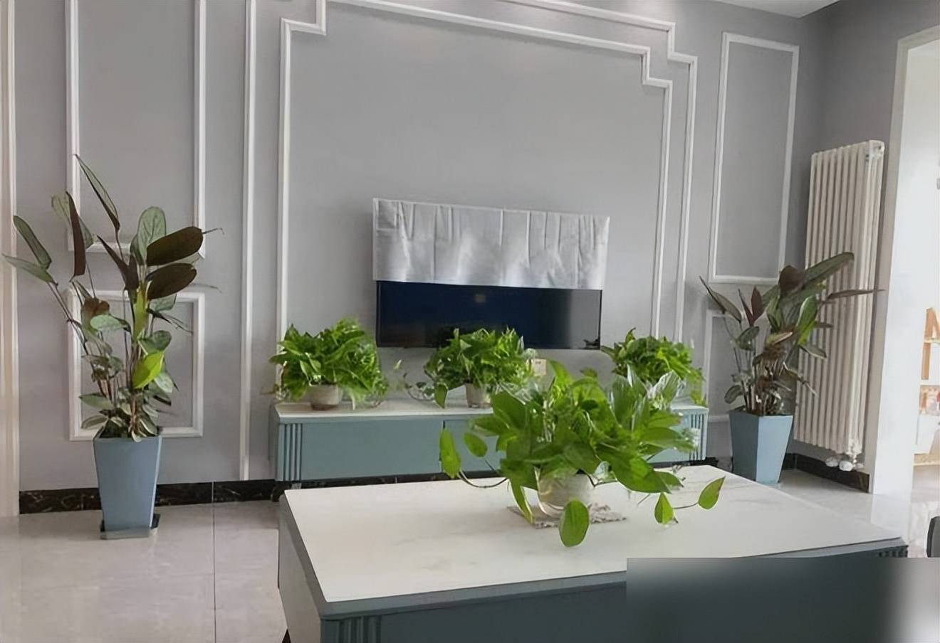 选对颜色、理顺风格,比盲目购买昂贵家具有效得多——比如电视墙用石膏线条做边框再贴墙布,立体感瞬间凸显,连电视柜、花盆都是灰蓝色,这种“悄然统一”的色调,显得颇为高级;沙发背景墙贴墙布,比乳胶漆更具质感,与灯光相融,晚上开灯坐在沙发上,甚至连手机都不想玩,只想静静窝着发呆——这才是客厅应有的模样,不是用于“摆拍”,而是用来“放松”的。