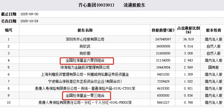 2025年3季报显示,由招商基金管理的全国社保基金六零四组合和博时基金管理的全国社保基金一零三组合,分别持有该公司2113.40万股、600.00万股,为第4和第9大流通股东。