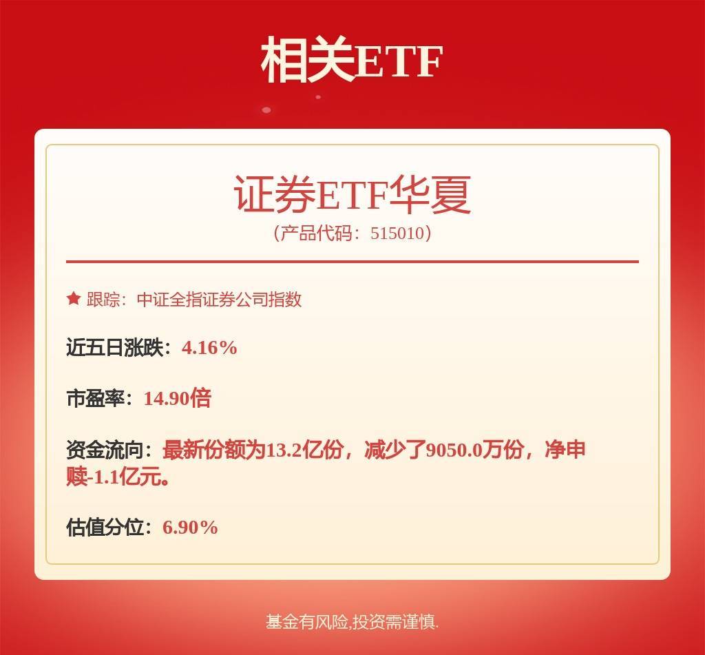 证券ETF华夏(515010),场外联接A:007992;联接C:007993;联接D:023766。