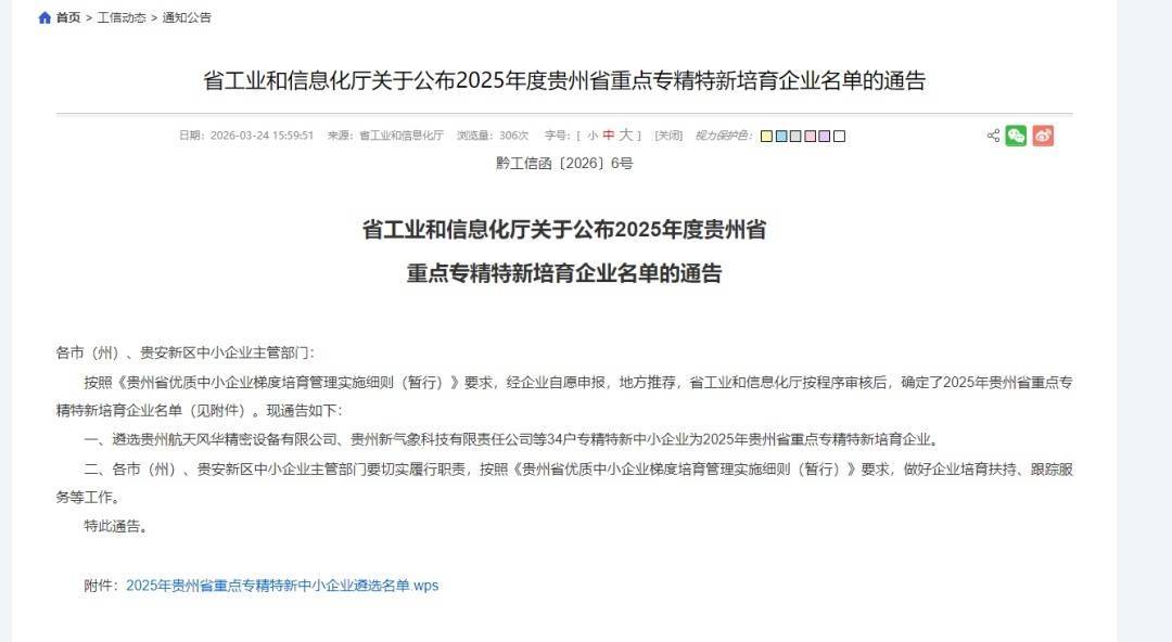 贵州省工业和信息化厅公示2025年贵州省重点专精特新中小企业遴选结果。