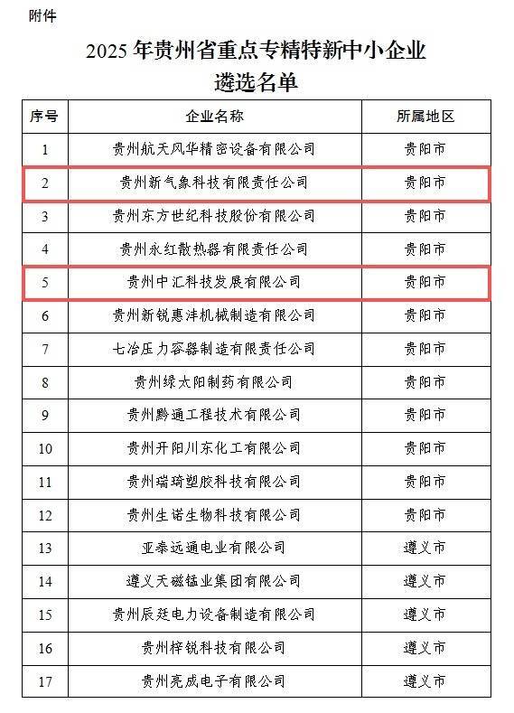 贵州新气象科技有限责任公司、贵州中汇科技发展有限公司两家企业上榜。