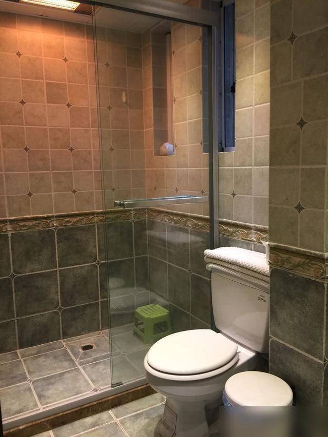 公共卫浴区必须夸夸复古小花砖!当初逛建材市场一眼就相中了浅蓝底带碎花纹的样式,“老气”?不存在的!搭配智能马桶盖瞬间就有了高级民宿的既视感~湿区挡水条特意加高两公分,“再也不用担心淋浴水漫金山啦”;还有那个迷你玻璃酒柜——本来想订实木款,后来算了笔账:玻璃门板既能展示收藏的红酒杯又方便擦拭(懒癌晚期患者狂喜),摆在餐桌旁当装饰还省空间......